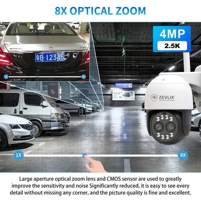 Zevlix Outdoor Wi-Fi Security Camera 8x Optical Zoom Dual lens Camera 2.5K Product form Zevlix Outdoor Wi-Fi Security Camera 8x Optical Zoom Dual lens Camera 2.5K $99.89Excl. VAT SKU: ZVX-OC008WH Free pickup in our shop(s) Quantity Add to cart This item is a recurring or deferred purchase. By continuing, I agree to the cancellation policy and authorize you to charge my payment method at the prices, frequency and dates listed on this page until my order is fulfilled or I cancel, if permitted. Free Shipping on Orders $35+Fast and reliable nationwide delivery with trusted carriers.Premium Quality GuaranteeEvery product is engineered and tested to meet international standards for safety, durability, and performance.Secure CheckoutBank-grade encryption safeguards every transaction.1-Year Limited WarrantyShop with confidence — every purchase is backed by a one-year limited warranty Share with your friends Share WhatsApp Deel Tweet Pin it Messenger Email