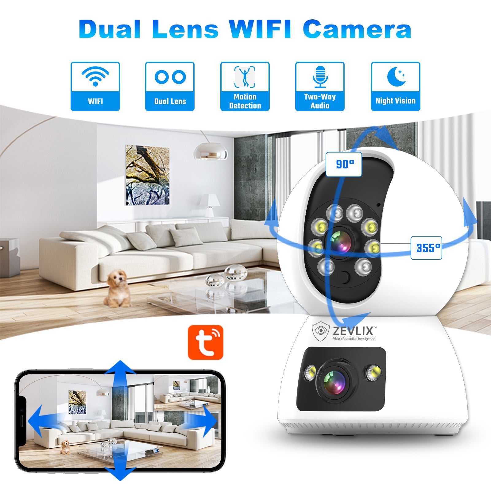Zevlix Wifi Indoor Dual lens Camera Product form Zevlix Wifi Indoor Dual lens Camera $39.99Excl. VAT SKU: ZVX-C024WH Free pickup in our shop(s) Quantity Add to cart This item is a recurring or deferred purchase. By continuing, I agree to the cancellation policy and authorize you to charge my payment method at the prices, frequency and dates listed on this page until my order is fulfilled or I cancel, if permitted. Free Shipping on Orders $35+Fast and reliable nationwide delivery with trusted carriers.Premium Quality GuaranteeEvery product is engineered and tested to meet international standards for safety, durability, and performance.Secure CheckoutBank-grade encryption safeguards every transaction.1-Year Limited WarrantyShop with confidence — every purchase is backed by a one-year limited warranty Share with your friends Share WhatsApp Deel Tweet Pin it Messenger Email